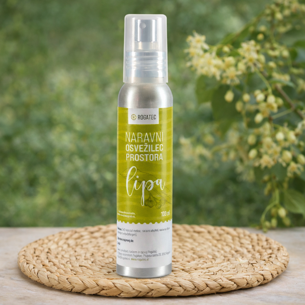Pridelano in pripravljeno v Muzeju na prostem Rogatec iz bio hidrolata melise, naravnega alkohola in naravne dišave lipe.