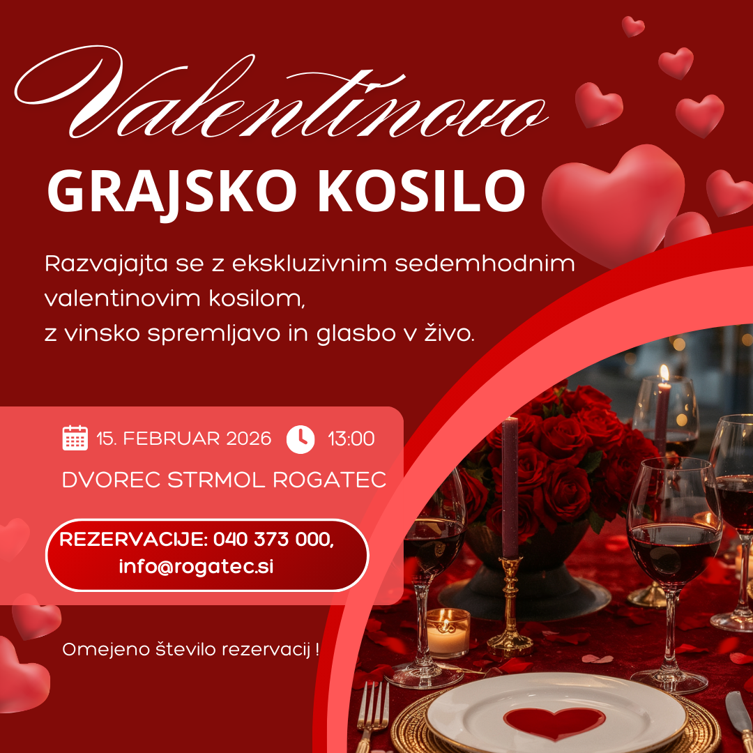 V nedeljo, 15. februarja 2026 ob 13.00, boste v Dvorcu Strmol Rogatec uživali v ekskluzivnem grajskem kosilu, zasnovanim kot celostno kulinarično in čutno doživetje.